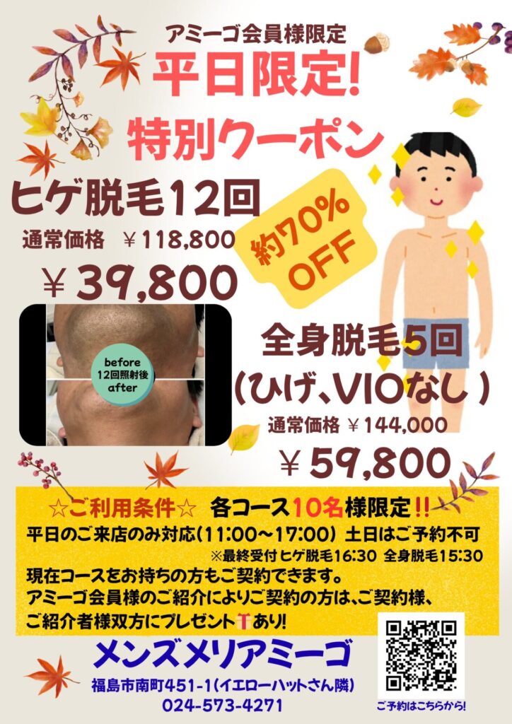 結果重視のメンズ脱毛・ヒゲ脱毛専門 Meli amigo 福島八木田店 【男性向け都度払い脱毛・ヒゲ脱毛・毛穴洗浄】