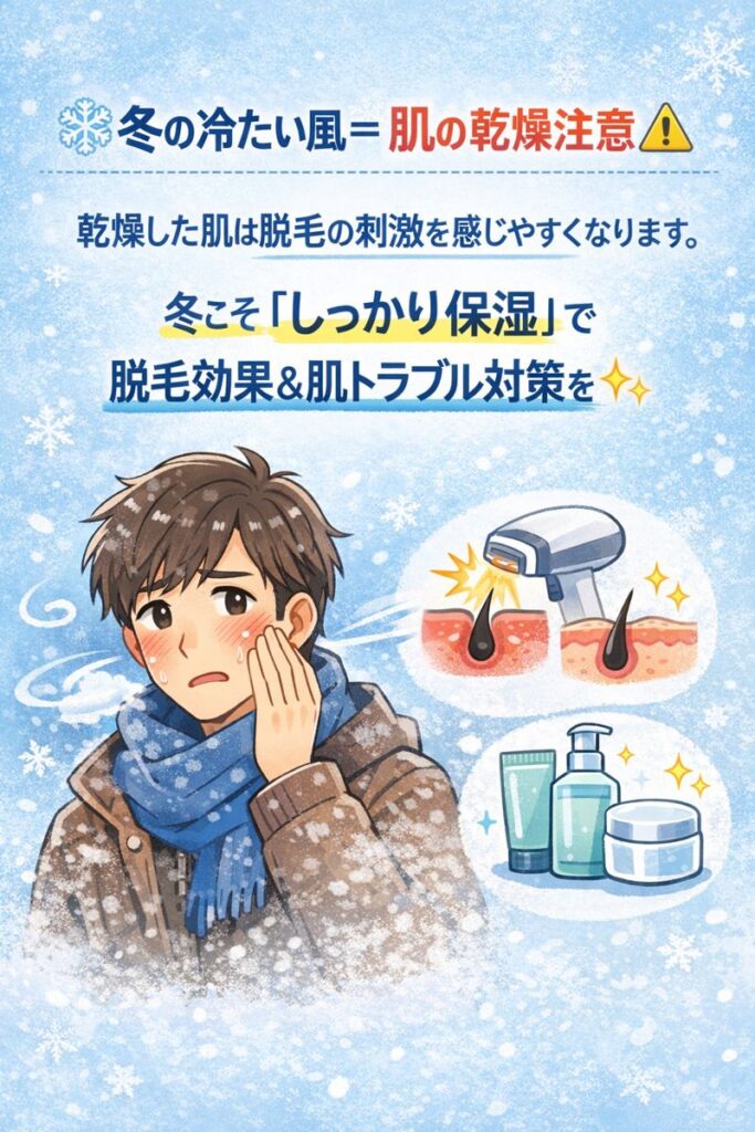 冬になると、冷たい風にさらされて「肌がつっぱる」「粉をふいたように乾燥する」と感じる男性は多いのではないでしょうか。実はこの冬特有の乾燥は、脱毛の効果や肌状態にも大きく関係しています。